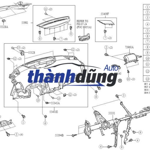BẢNG TÁP LÔ TRÊN FORD RANGER 2023 | N1WB-E04268 được sản xuất kết cấu khung bằng nhựa, đối với xe cao cấp nó được bọc da hay ốp những gỗ đắt tiền. Táp lô này như một khay để đồ rỗng trên đó họ có thể lắp đặt các phụ tùng ô tô khác như đồng hồ táp lô, cửa gió điều hòa, điều hòa trung tâm và màn hình giải trí. Bên trên táp lô thì đồng hồ táp lô là quan trọng nhất nó hiển thị rất nhiều thông tin giúp người lái xe được an toàn. Táp lô ô tô thường có hai mầu đen hoặc nâu sần thương hơi ráp để giữ những đồ do tài xe muốn trang trí cho xế yêu của mình. Táp lô này được cố định bằng một khung xương bằng sắt rất chắc chắn.
