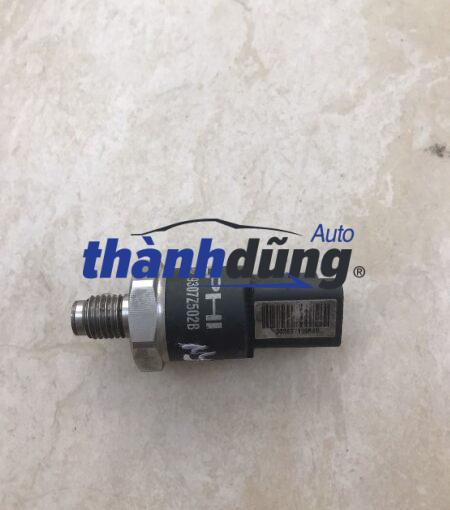 Cảm biến áp suất nhiên liệu (FRP) được lắp đặt trên ống phân phối nhiên liệu áp suất cao, có nhiệm vụ chuyển đổi áp lực nhiên liệu thành tín hiệu điện áp thông qua cảm biến từ chất bán dẫn piezo, sau đó gửi về ECM. Cấu trúc nội bộ của cảm biến áp suất nhiên liệu được tạo ra từ một màng ngăn chứa cảm biến piezo. Khi có sự thay đổi trong áp suất nhiên liệu, màng ngăn của cảm biến piezo sẽ bị biến dạng, tạo ra tín hiệu điện áp tương ứng. Nếu áp suất nhiên liệu trong ống phân phối là cao, màng ngăn sẽ biến dạng mạnh, tạo ra tín hiệu điện áp cao. Ngược lại, nếu áp suất thấp, sẽ xuất hiện tín hiệu điện áp thấp. ECM sẽ tiếp nhận và tính toán áp suất thực tế của nhiên liệu. Sau đó điều khiển van SCV (Suction Control Valve) để điều chỉnh áp suất nhiên liệu sao cho đáp ứng đúng các yêu cầu của người lái.