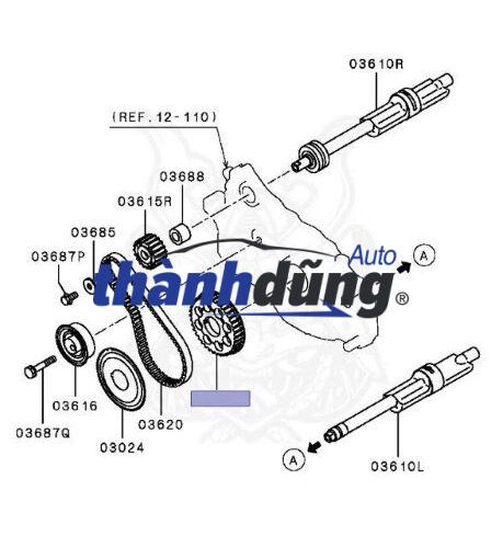 - Nhông bánh răng thường được kẹp ngay sát mặt ngoài của bánh răng cam trục cơ (bánh răng truyền động kéo dây curoa cam) và nằm bên trong Puly đầu trục cơ.