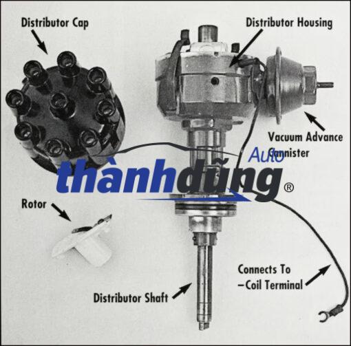 Cây chia điện ô tô (Ignition Distributor) thường được lắp đặt ở vị trí gần bô bin và trục khuỷu động cơ. Cấu tạo bộ chia điện ô tô gồm ba bộ phận chính, cụ thể: Bộ tạo xung điện là bộ phận tạo ra xung điện cao áp từ cuộn dây đánh lửa, thường được lắp ở trên nắp máy hoặc bên hông động cơ, bao gồm có một cuộn sơ cấp và một cuộn thứ cấp. Cuộn sơ cấp là nơi nhận xung điện từ bộ tạo xung điện và tạo ra xung điện cao áp. Cuộn thứ cấp sẽ tiếp nhận xung điện từ cuộn sơ cấp và tăng áp lên đến mức cần thiết để tạo ra tia lửa điện. Bộ phận quan trọng thứ hai trong cấu tạo bộ chia điện ô tô không gì khác ngoài bộ phận chia điện. Nó đảm đương vai trò phân phối xung điện cao áp từ cuộn thứ cấp đến các bugi, bao gồm bộ chia điện, rotor và các dây dẫn xung điện. Bộ chia điện có nhiệm vụ chuyển đổi xung điện từ cuộn thứ cấp thành các xung điện riêng biệt cho từng bugi. Rotor sẽ quay theo chu kỳ của động cơ và phân phối xung điện đến các đầu bugi theo thứ tự chính xác. Bộ điều khiển sẽ nhận tín hiệu từ bộ cảm biến và điều chỉnh thời điểm đánh lửa thông qua van điều khiển. Khi tốc độ động cơ tăng lên, bộ điều khiển sẽ điều chỉnh thời điểm đánh lửa sớm hơn để đảm bảo hiệu suất động cơ tốt nhất.