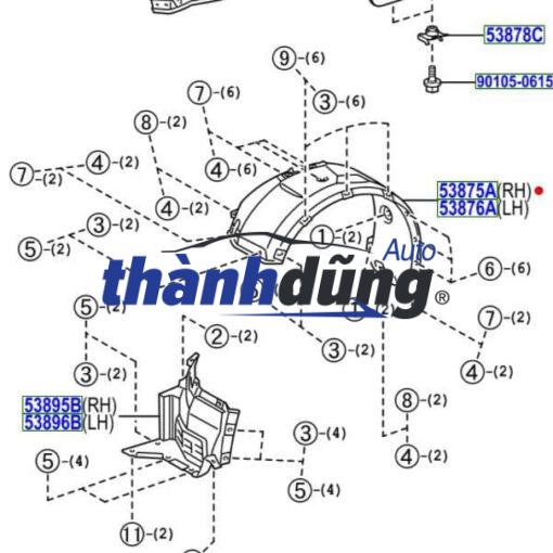 - Chắn bùn trước: Lắp đặt ở phía trước bánh xe, giúp bảo vệ phần đầu xe và gầm xe. thường là bằng nhựa được cố định vào xe bằng những ốc vít nhựa.
