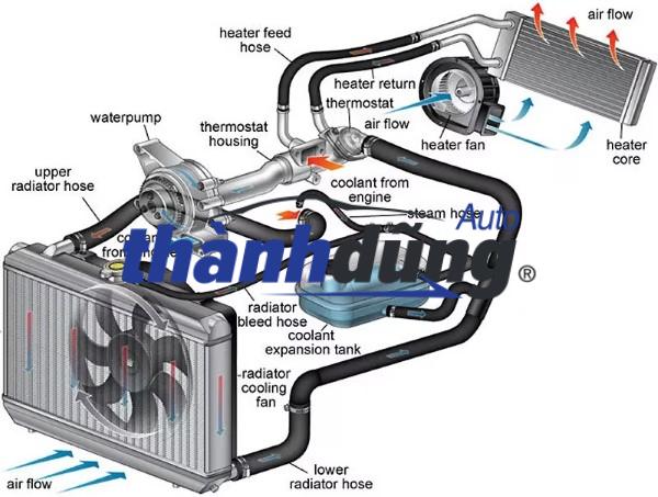 Để két nước hoạt động hiệu quả, nó cần sự phối hợp của nhiều bộ phận khác trong hệ thống làm mát: