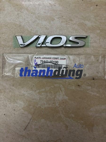 LOGO CHỮ VIOS CỐP HẬU XE TOYOTA VIOS | 75442-0D190, sản xuất bởi Toyota, phụ tùng chính hãng, giá tốt nhất. LOGO CHỮ VIOS CỐP HẬU XE TOYOTA VIOS xuất xứ Thái Lan.