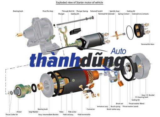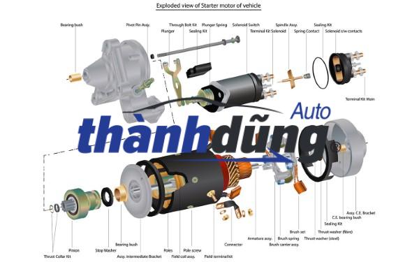 - Rơ le đề: nam châm điện được kích hoạt khi bạn đạp côn, cấp điện cho rơ-le cụ đề.