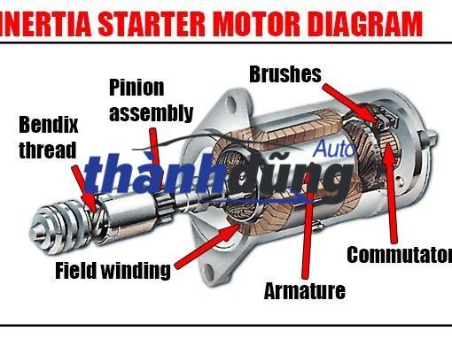 - Càng gạt: Di chuyển bánh răng pinion để nó ăn khớp với bánh đà.