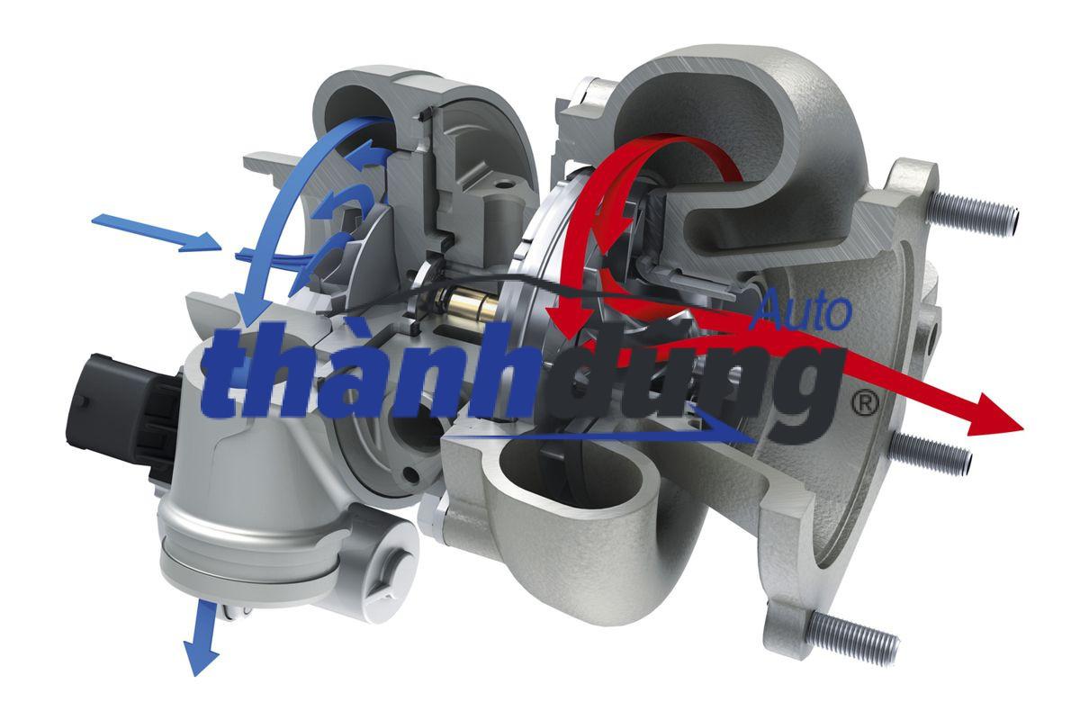 Turbo tăng áp thường có hình xoắn ốc. Cấu tạo bên trong gồm: cánh tuabin, cánh bơm, trục, ổ bi đỡ, đường dẫn đầu bôi trơn trục turbo. Cánh tuabin và cánh bơm nằm ở hai khoang riêng và được nối liều với nhau thông qua một trục. Cánh tuabin nằm ở bên khoang kết nối với cổ góp nhận lực đẩy từ dòng khí xả động cơ và cánh bơm nằm ở khoang đối diện cách. Turbo có ưu điểm là tăng công suất, giúp xe chạy với công suất lớn hơn mà không cần tăng số lượng và dung tích xi lanh. Theo các nghiên cứu, động cơ turbo có thể tăng công suất từ 20% đến 40% so với động cơ không có turbo. Động cơ turbo giúp tận dụng tối đa lượng nhiên liệu được đốt cháy trong buồng đốt, giảm lượng nhiên liệu thải ra ngoài. Điều này giúp giảm mức tiêu hao nhiên liệu và chi phí vận hành cho xe. Theo các nghiên cứu, động cơ turbo có thể tiết kiệm nhiên liệu từ 10% đến 15% so với động cơ không có turbo. Động cơ turbo giúp giảm lượng khí thải ra môi trường, bảo vệ sức khỏe con người và hạn chế biến đổi khí hậu. Điều này là do động cơ turbo tăng hiệu quả đốt cháy, giảm lượng khí thải chưa hoàn toàn và các chất gây ô nhiễm như CO, HC, NOx… Theo các nghiên cứu, động cơ turbo có thể giảm khí thải từ 15% đến 25% so với động cơ không có turbo.